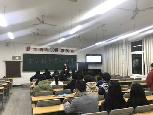 17级英语教育班,应用英语班在班主任的带领下共同了解了文明礼貌月。首先由班主任讲述了文明礼仪伴我行的重要性,以及关于中华传统礼仪的一些事情,后来又告诉了他们一些需要注意的关于卫生文明宿舍的事情,倡导大家一起用文明用语,日常注意自己的行为,做文明人。