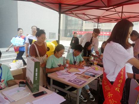 迎新活动从早上6点一直持续到下午2点,为了缓解新生第一次到校的紧张情绪,外语系推普站工作人员写好祝福语,给每一位新生送去祝福。系部安排了志愿者顶着高温穿着皮卡丘和白雪公主的人偶套装与同学们互动拍照活跃气氛,为每一位新生准备了外语系独有的运动手环作为小礼物。志愿者用他们的热情和爱心迎接每一位新同学的到来,从报名处到注册处,再到寝室,处处涌动着他们忙碌的身影,拉皮箱、搬被褥,忙得不亦乐乎。系部领导、老师、新生辅导员一直在接待处忙碌着,协调新生接待工作,并与家长亲切交谈,询问新生家庭情况,勉励新生入学后好好学习,用优良的成绩回报家长和社会。