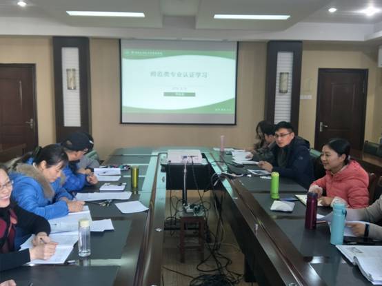 师范类专业认证是专门性教育评估认证机构依照认证标准对高校师范类专业人才培养体系的质量状况与办学资格实施的一种外部评价,它对于高校师范类专业的发展建设有着重要意义。为促进全系上下更好地了解和掌握师范类专业认证的重要意义和核心内容,12月10日下午,外语系举行了师范类专业认证标准学习研讨活动。本次活动由外语系主任花萌主持,外语系全体教师参加了活动。