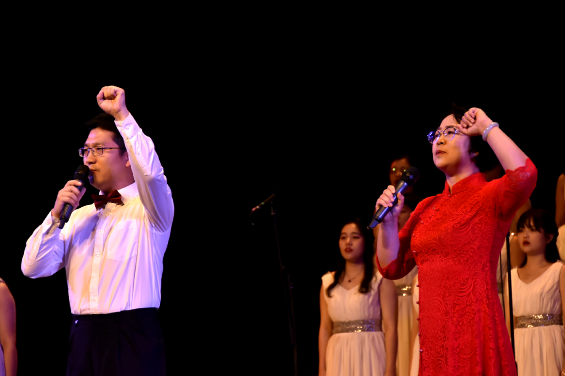 外语系党总支的合唱曲目是《英雄赞歌》,师生用嘹亮的歌声歌唱中国共产党成立100周年以来的光辉历程和伟大成就。