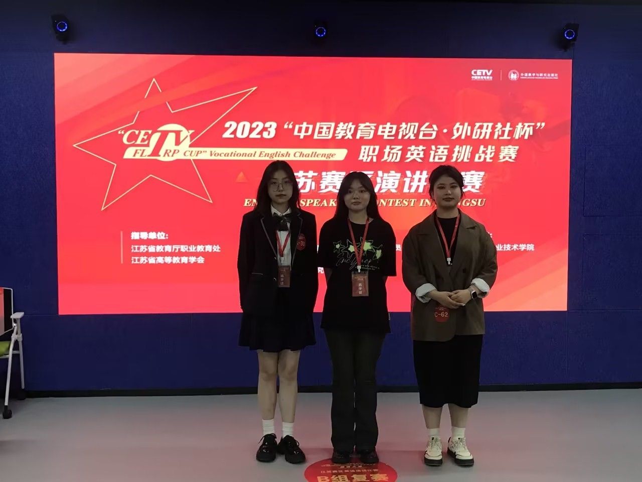 11月2日至11月4日,2023“中国教育电视台·外研社杯”职场英语挑战赛演讲大赛在江苏海事职业技术公司举行,公司参赛的三位同学在激烈角逐中沉着应赛,展现出良好的心理素质、职场素养和英语水平,并获得二等奖的好成绩。