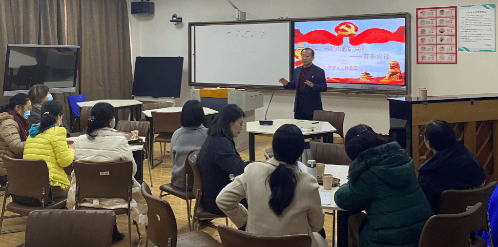 孙玉柱以《再唱山歌给党听》为题,通过一首首经典红色曲目的讲授与弹唱,激起老师们强烈共鸣,勾起对中国革命峥嵘岁月的回忆。让老师们在感受艺术熏陶的同时,也“沉浸式”体悟到中国共产党人的初心和使命。
