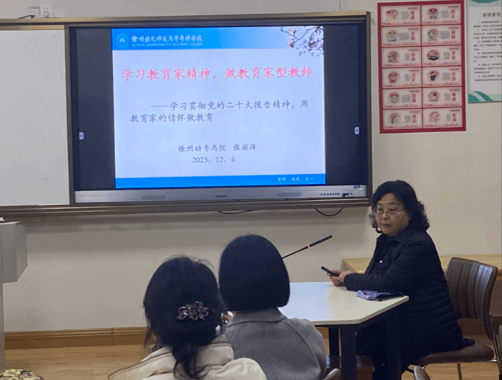 张丽萍以《学习教育家精神,做教育家型教师》为题,围绕为什么要加强教师队伍建设、建设什么样的教师队伍,以及如何加强教师队伍建设,从“四有”好老师到“四个引路人”;从“经师”和“人师”相统一的“大先生”,再到“中国特有的教育家精神”,深入浅出地阐述了教师素养对高素质人才培养的重要性。