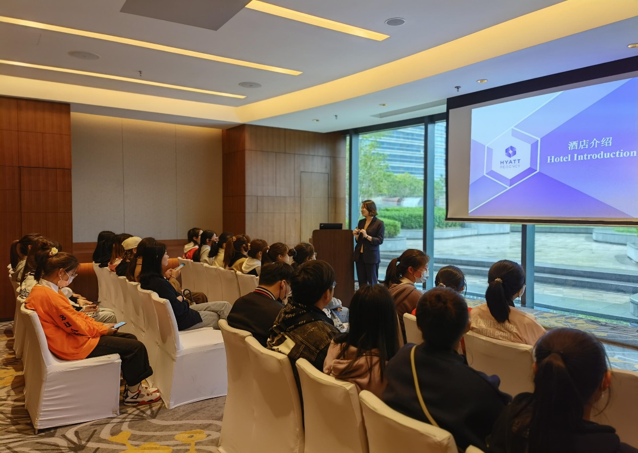同学们到达酒店后,酒店HR总监Nancy女士先为同学们做了有关企业文化、酒店运营、实习岗位设置等情况的介绍,并就同学们关心的实习待遇、工作环境、保险缴纳、食宿安排等问题做了详细解答。