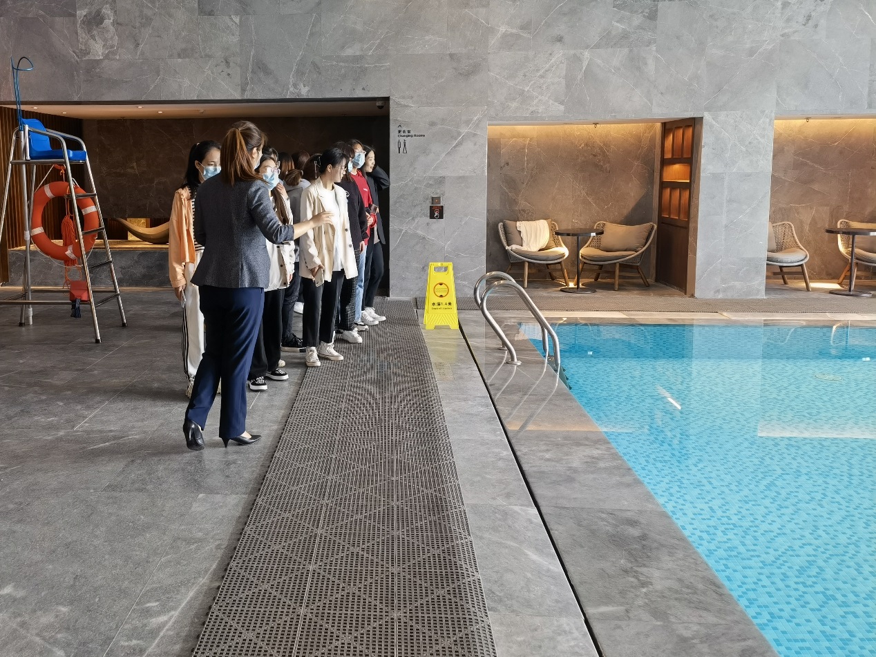 为帮助同学们全面了解酒店运营,企业方带领同学们在凯悦酒店进行了一场“探秘之旅“。从负1层至60层,从大堂、客房、餐厅、宴会厅、健身中心、酒吧到咖啡厅,同学们对酒店各个部门有了初步了解,对实习岗位的工作职责也有了直观的认识。