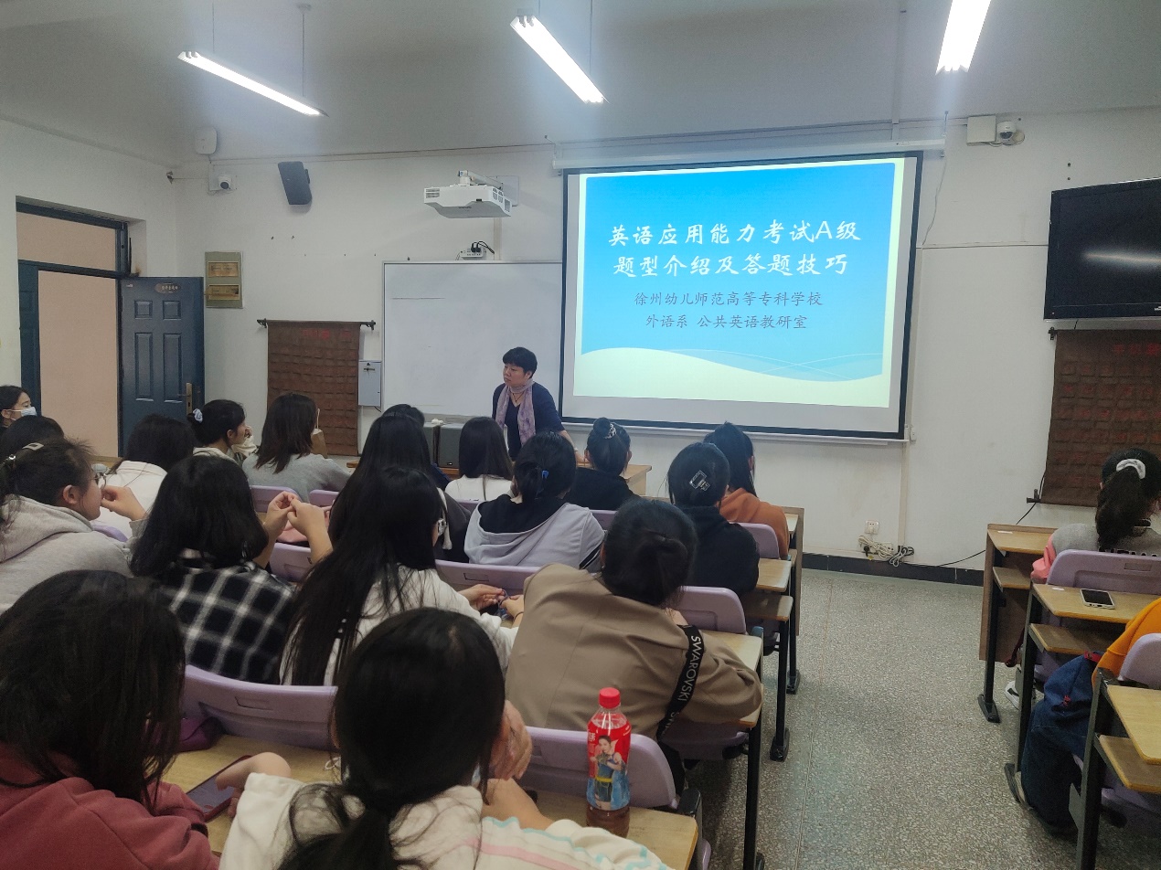 为提升公司英语应用能力A级考试过关率,2021年11月3日下午,外语系组织公司五年制员工开展了A级备考讲座。讲座由外语系副主任李玉梅主讲,主要围绕等级分类、考试内容、考试题型、答题技巧等方面展开,系统、全面的分析了关于A级考试的难度及重点。