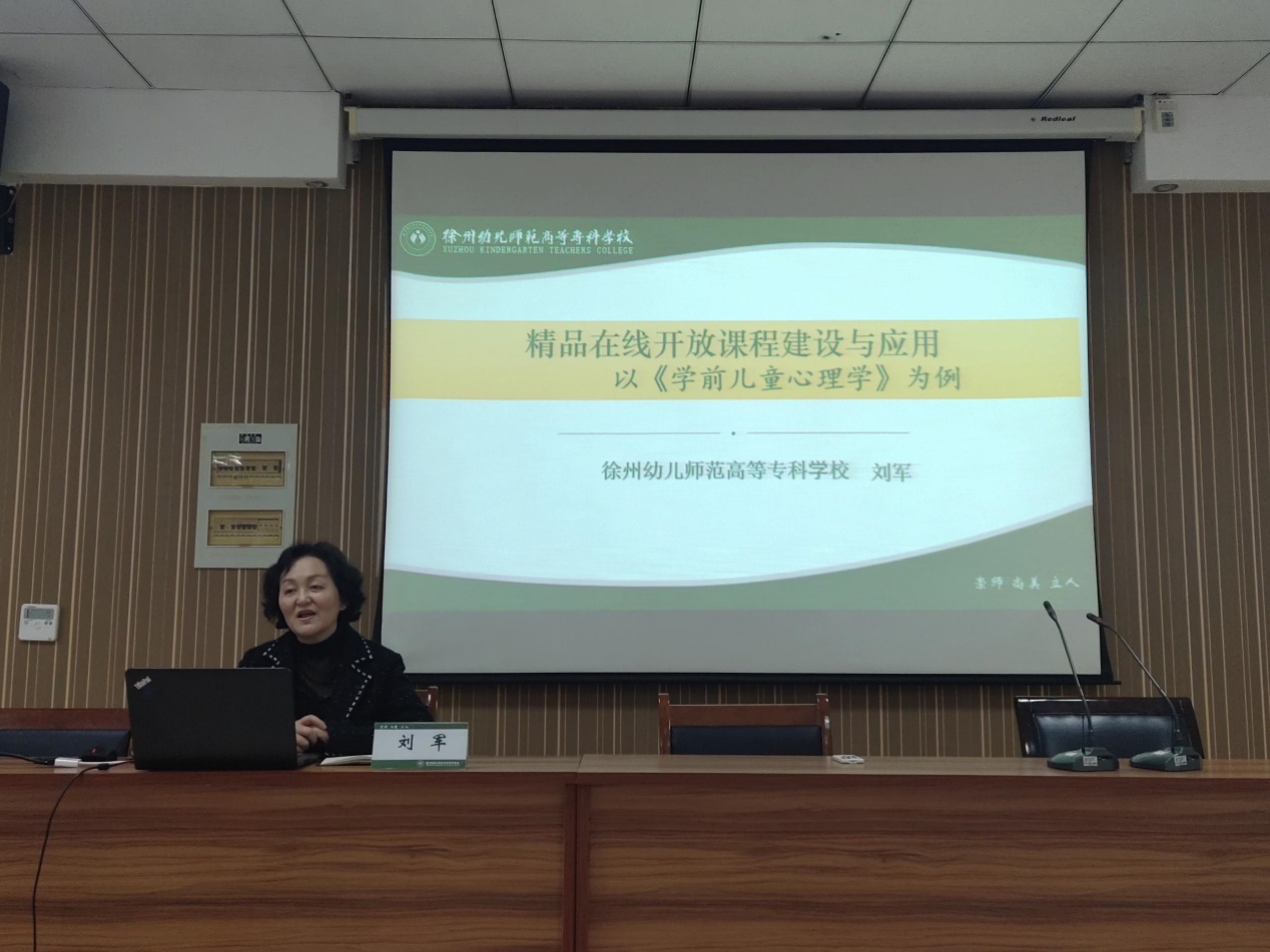 刘军教授是江苏省学前教育学会专家库成员,首批国家级职业教育教师教学创新团队成员。作为团队负责人刘教授把在建设国家精品在线开放课程过程中的经验体会分享给了聆听讲座的各位老师。通过刘教授的耐心讲解与经验指导,老师们对于新兴的在线教育形式即在线开放课程建设的必要性、技术性及应用性等方面都有了更深刻的认识和理解。