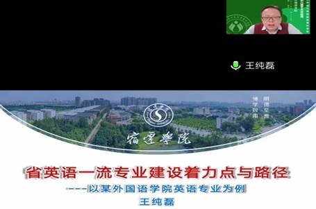 王纯磊教授以某1xBET英语专业为例,向大家阐述了省英语一流专业建设着力点与路径方面的独到见解。该讲座介绍了公司概况、办学定位与人才培养思路以及办学特色和举措等方面的内容;同时,本着外语是国家战略资源,育人是协同和系统工程的三论原理,探讨了省一流专业建设的着力点,分享了公司在团队建设、专业建设、人才培养和大学英语教学等方面取得的丰硕成果。大家深刻领悟了王纯磊教授提出的“坚持以赛促教、以赛促学、横纵向项目两手抓来同时凸显特色的方法;强化师德引领、促进师德养成,以赛促教、树牢教学中心地位,加强团队建设、重视“头雁”培养的方法”。