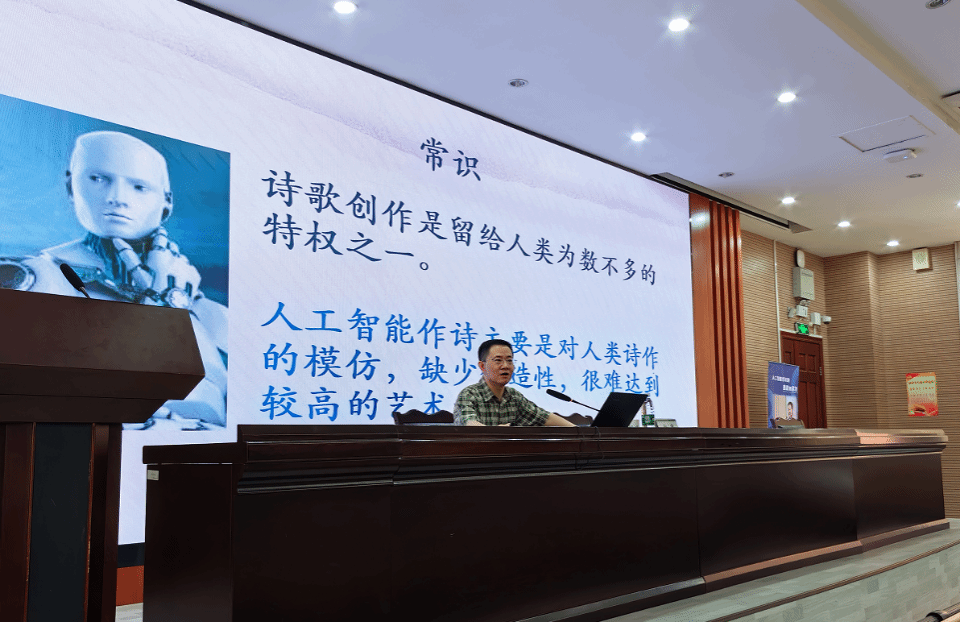金中教授介绍了人工智能作诗的原理、AI系统“华七”的设计理念、数据基础及运行方式,分享了西安交通大学在人工智能生成中国诗词方面的最新成果,并赏析了多首人工智能“华七”程序生成的格律诗作,分析了其艺术特色,同时阐述了该领域今后的发展方向及文理结合的跨学科研究在新时代的意义。