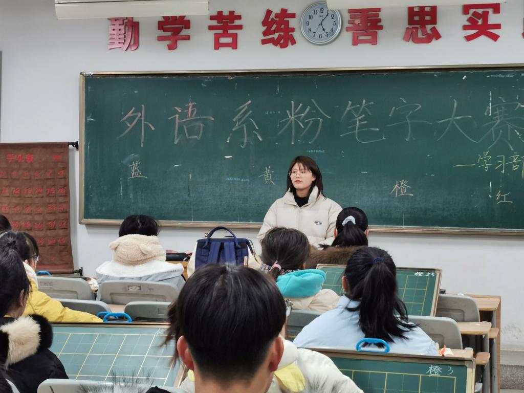 汉字具有独特性和不可替代性,它是世界上唯一的表意文字。练好它将其乐无穷。为了提高同学们练字积极性,展现书法的魅力,丰富同学们的课余文化生活,也为热衷于书法的同学们提供一个展现自我的平台,由外语系学习部组织的粉笔字大赛于12月14号下午五点拉开了序幕。