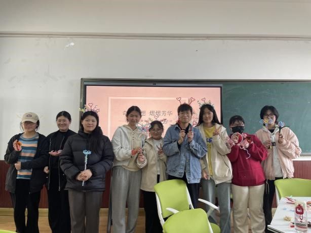 活动现场,大家制作地十分投入,通过各种颜色搭配将扭扭棒塑造成花朵、蝴蝶、戒指、魔法棒、发箍,甚至是一只小蟑螂,将想象力和创造力展现的淋漓尽致,同学们互相欣赏着对方造型生动的作品,脸上满是喜悦和成就感。