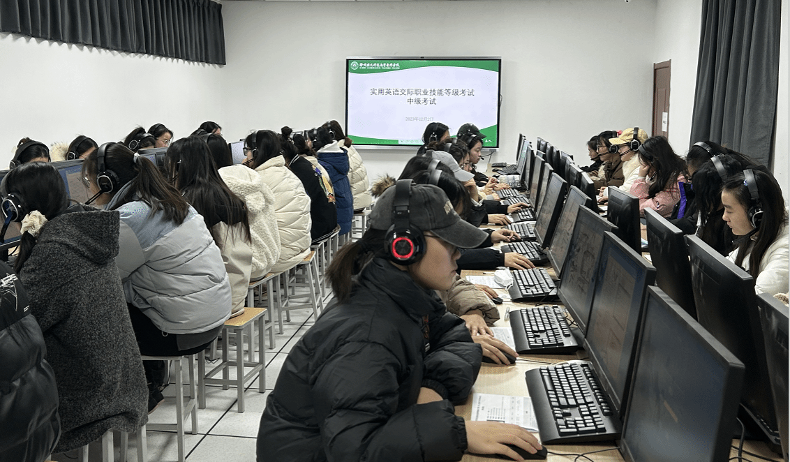 12月2日,2023年下半年1+X实用英语交际职业技能等级证书(简称VETS)考试在公司洞山校区顺利开考,公司小学英语教育专业、应用英语专业、旅游英语专业200名员工参加本次考试。
