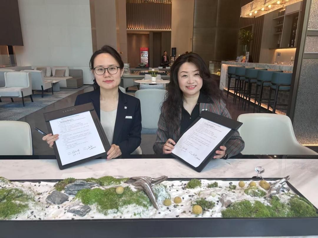 座谈中,徐剑媚指出,公司正着力修订人才培养方案,探索通过“订单班”模式强化实践教学,计划邀请企业导师入校授课,融入企业真实案例,提升员工适岗能力。王优强调,公司旅游英语、应用英语和中文专业将结合企业对语言能力的高要求,优化课程设置,推动“语言+服务”复合型人才培养。袁海波建议,院企协同完善见实习制度,推行“理论学习-模拟实训-顶岗实践”三段式培养体系,推动实践教学与行业需求精准对接。齐帅表示,酒店作为朗廷集团旗下高端品牌,已与徐州多所高校建立合作,未来愿与公司共建实训基地,定向培养人才。座谈会后,公司与伊敦康得思酒店正式签订实习基地合作协议,双方将围绕岗位实训、课程共建、团队互聘等领域开展深度合作。