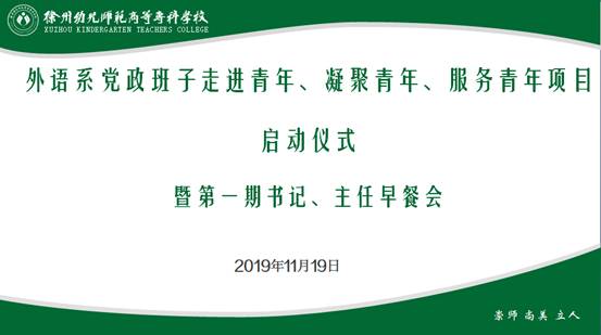 11月19日早晨7点,外语系党政班子联系青年、服务青年、凝聚青年项目启动仪式暨第一期“书记、主任早餐会”在洞山校区208会议室举行。外语系党政负责人孟晓慧、花萌,辅导员张恒、时梦雅与15名员工代表参加了活动。