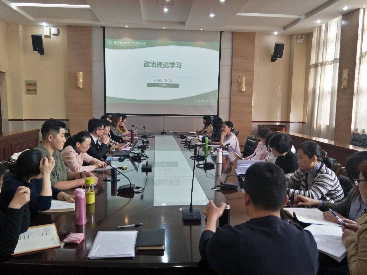 根据公司党委的统一安排,10月21日下午,外语系在碧螺校区A100会议室组织全体教职工参加理论学习活动,会议由外语系副主任李玉梅主持。