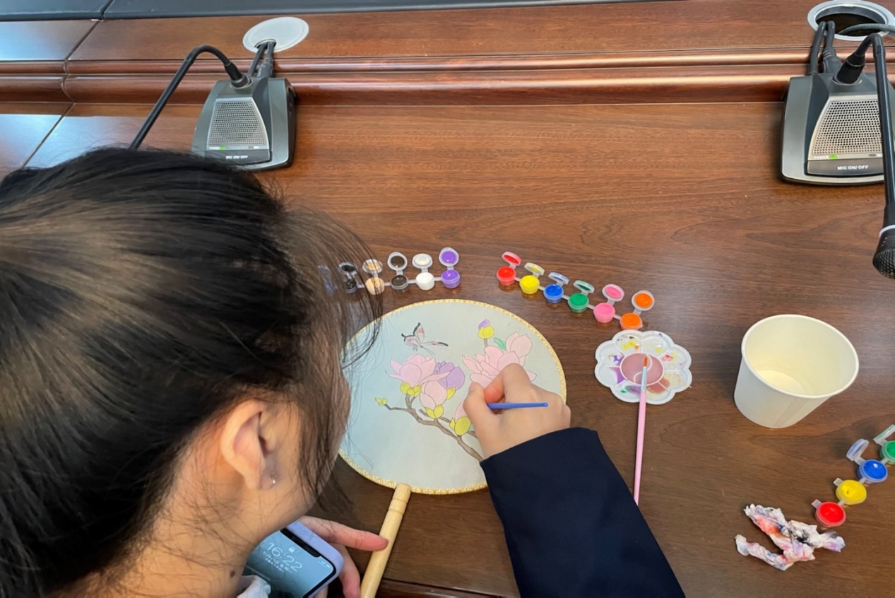 活动以承载中国传统文化的团扇为载体,将廉洁校园建设与手绘创作相结合,一把团扇、一排颜料、一支画笔,在公司老师的悉心指导下,一朵朵精美的花簇在团扇上绽放。同学们或以莲花赞清白,或以竹子赞正直,或以梅花喻高洁,或诗词抒感悟以自省,用画笔传递着坚定的廉洁信念,展示出自己的敬廉、崇廉之心。