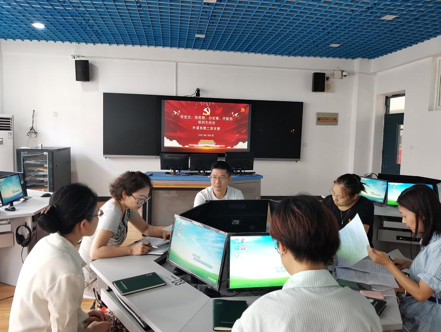 根据公司党委统一部署,2021年7月8日上午,外语系第二党支部在碧螺校区B203召开党史学习教育专题组织生活会。会议由宣传委员牛丽娜主持。