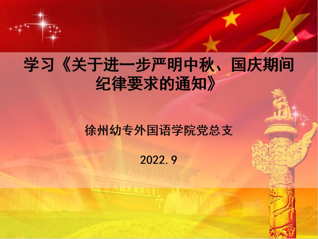 中秋、国庆双节将至,为坚守节点,确保节日期间风清气正,2022年9月8日外国语公司党总支组织全体教师召开线上会议,集中学习《关于进一步严明中秋、国庆期间纪律要求的通知》。会议由外国语公司党总支纪检委员李玉梅主持,会上党总支书记孟晓慧强调坚决防止“四风”问题反弹回潮,尤其党员教师要带头厉行节约,反对浪费。党总支副书记花萌最后进行会议总结,同时提出倡议,全体教师做出承诺,线上签署承诺书。
