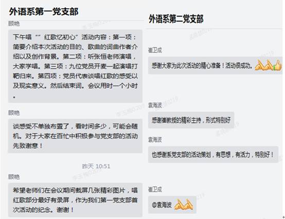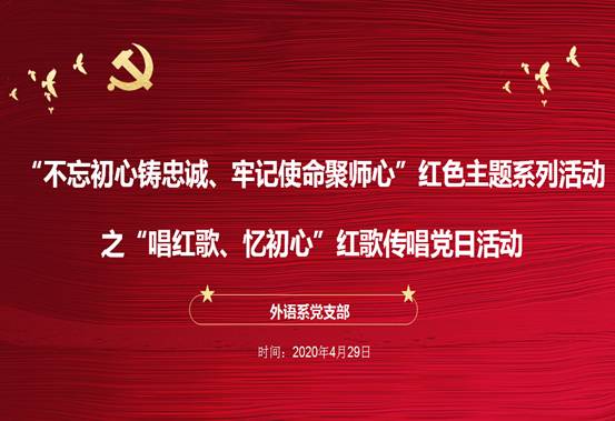 4月29日,外语系党支部开展了“唱红歌、忆初心”红歌传唱活动,活动由三级党支部书记崔卫成、顾艳教授主持。