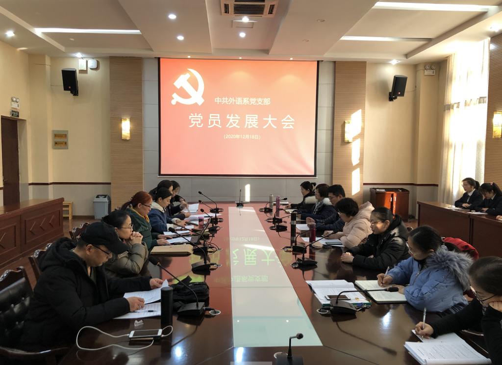 12月18日下午,外语系党支部召开党员大会,主要讨论接收卫玉晨等4位同学为预备党员的问题。会议由支部组织委员尉艳英同志主持,支部全体党员同志及发展对象参与此次议会。