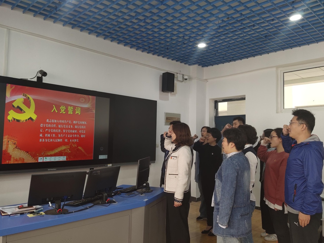 交流结束后,大家心潮澎湃。外语系党支部书记丰娴静带领全体成员重温入党誓词,大家郑重举起右手,庄严宣誓,表明为党的事业奋斗终身的坚强决心。