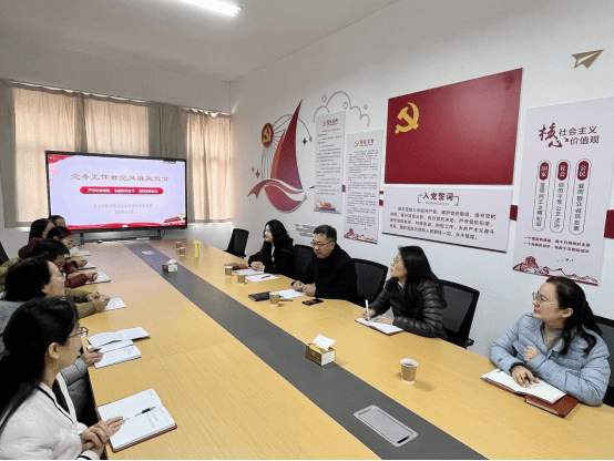 首先,徐剑媚带领大家学习了《习近平关于党风廉政建设和反腐败斗争论述摘编》中部分论述的原文,并和大家分享了自己对于“廉政”的历史沿革和内涵的理解。她指出需要认识到精神懈怠、不思进取,拈轻怕重、安于现状,不立新目标、缺乏新动力同样是不廉,她用鲜活的案例鼓励大家,对待工作要认真踏实、务实求实、担当有为,作为党务工作者,需要做到不懒政、不怠政、不庸政。